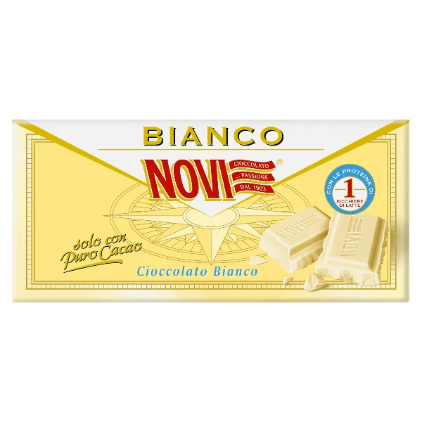 Découvrez la douceur raffinée du chocolat blanc italien avec la Tavoletta Cioccolato Bianco Novi, un délice signé par l’un des maîtres chocolatiers les plus réputés d’Italie.