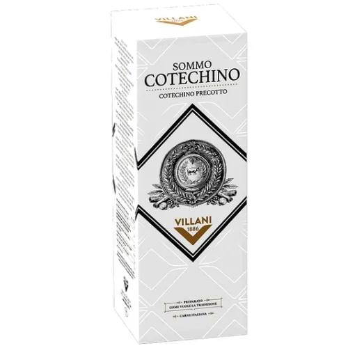 Déjà précuit, le Villani Cotechino précuit est simple et rapide à préparer : il suffit de le réchauffer doucement pour profiter pleinement de son goût typique. Il accompagne parfaitement les lentilles, la purée ou les légumes mijotés, notamment pour les repas de fin d’année à l’italienne.