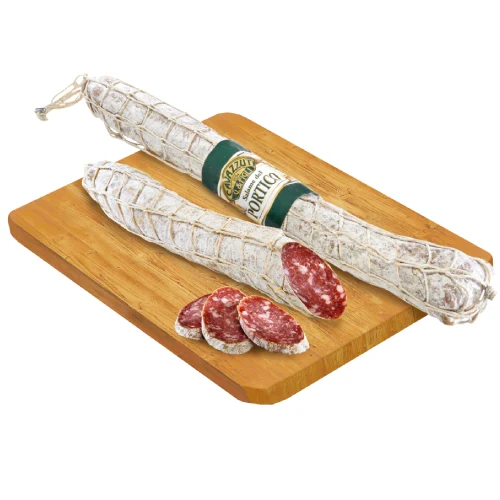 Le Salame Portico se déguste finement tranché, accompagné de pain rustique, de fromages italiens et d’un bon vin rouge (Lambrusco, Chianti ou Montepulciano).